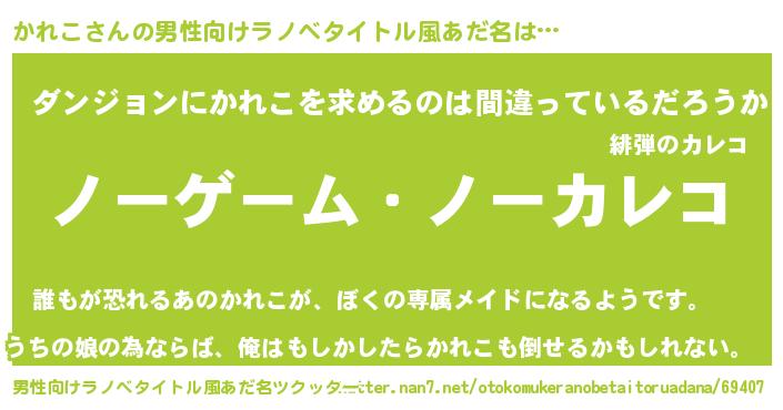 | 女子向けラノベタイトル風あだ名 | 『かれこ恋絵巻』『かれこは平凡を望む』 |