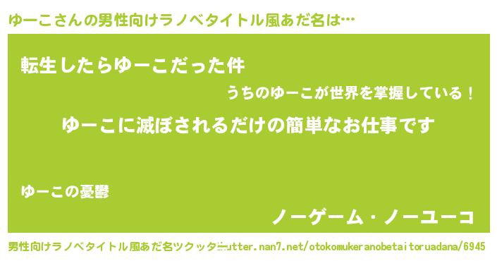 | 意味不明あだ名 | 『ヨモギ科ゆーこ属』『ペロリンゆーこ』 |