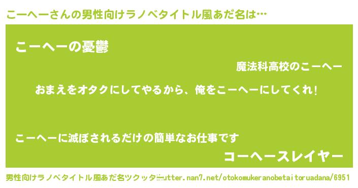 | 女子向けラノベタイトル風あだ名 | 『こーへー夫妻のなれそめ』 |