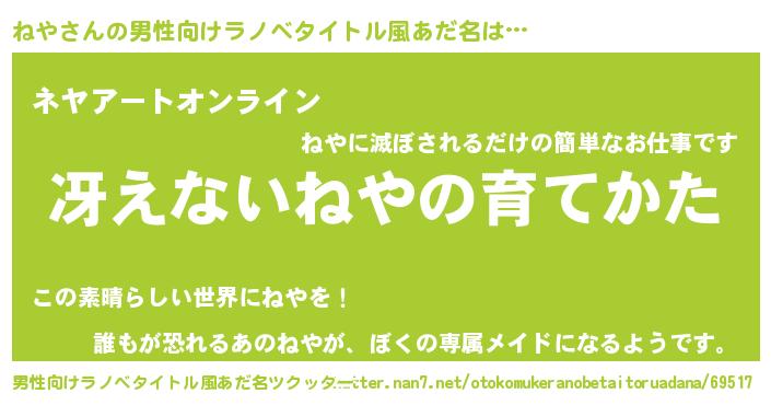 | 胡散臭い通販商品みたいなあだ名 | 『モテモテ間違いなし霊験あらたかなお札…その名も「ねや」』 |