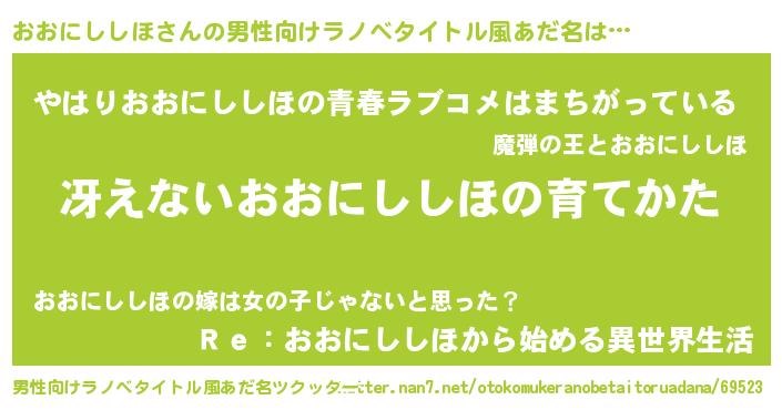 | 肩書あだ名 | 『おおにししほ船長』『おおにししほ総統』 |