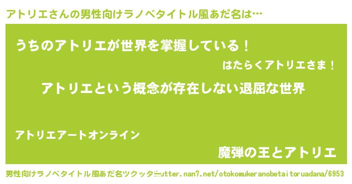 | ヘコむあだ名 | 『アトリエ(小並感)』『アトもー』 |