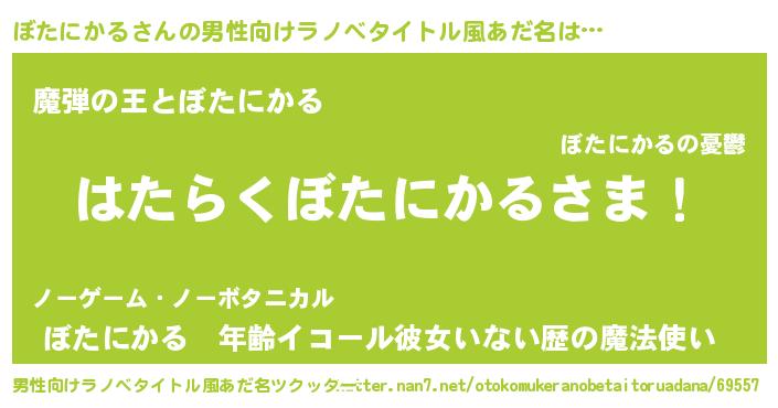 | 意味不明あだ名 | 『住所不定無職ぼたにかる(81歳)』 |