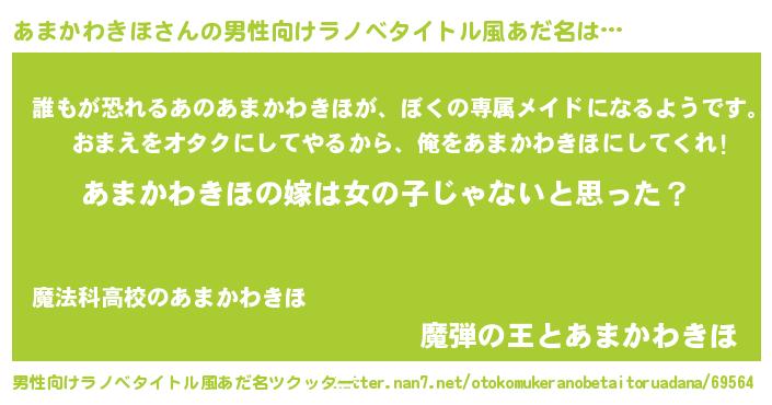 | 女子向けラノベタイトル風あだ名 | 『あまかわきほ様がみてる』 |