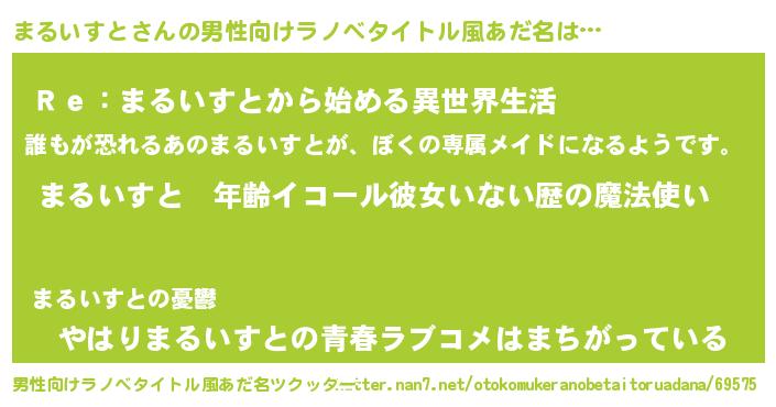 | 女子向けラノベタイトル風あだ名 | 『まるいすとの玉の輿計画!』 |