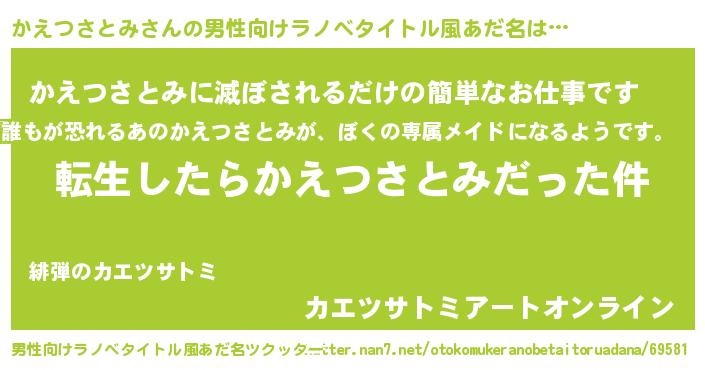 | 胡散臭い通販商品みたいなあだ名 | 『モテモテ間違いなし霊験あらたかなお札…その名も「かえつさとみ」』 |