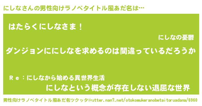 | 女子向けラノベタイトル風あだ名 | 『にしなは平凡を望む』 |