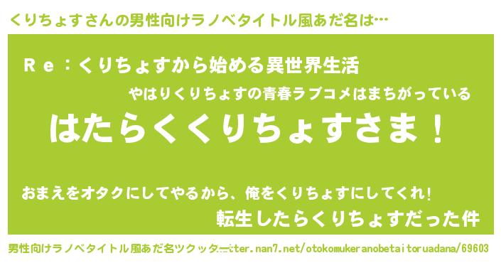 | ヘコむあだ名 | 『牛乳』『くりにー』『くりお』 |