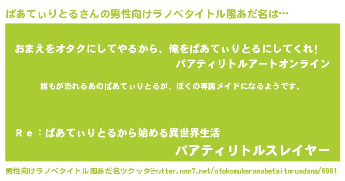 | 意味不明あだ名 | 『永久保存ぱあてぃりとる』 |