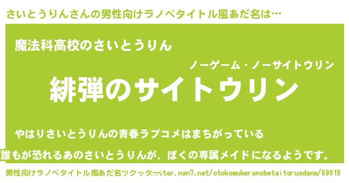 | 意味不明あだ名 | 『自称さいとうりん』 |