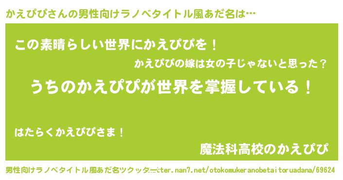| 胡散臭い通販商品みたいなあだ名 | 『あなたにだけ特別に提供する世界で10本だけ現存している希少なブランデー…その名も「かえぴぴ」』 |