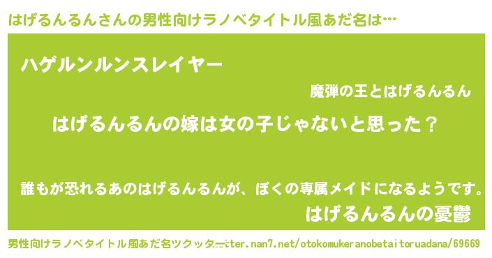 | 意味不明あだ名 | 『とにかく怪しいはげるんるん』 |