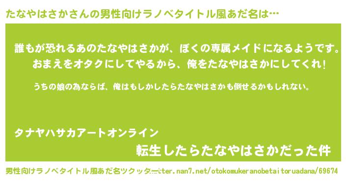 | 女子向けラノベタイトル風あだ名 | 『たなやはさかの婚約者』 |