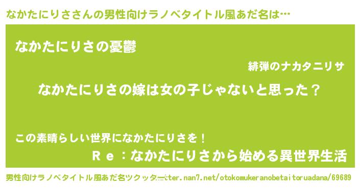 | ヒーロー風カッコイイあだ名 | 『幻影騎士ナカ』『スーパーナカタニリサ』 |