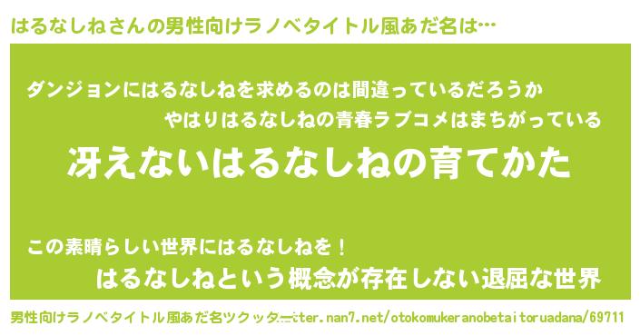 | ヘコむあだ名 | 『はる太郎』『はるなしね(笑)』 |
