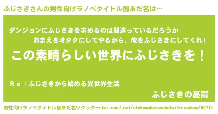 | 女子向けラノベタイトル風あだ名 | 『悪役ふじさきに転生したようですが、知った事ではありません』 |