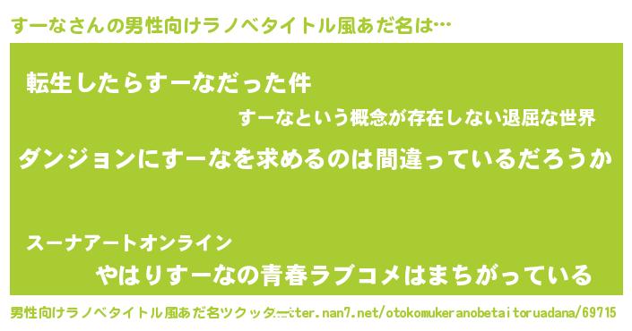 | 胡散臭い通販商品みたいなあだ名 | 『伝統あるサプリメント…その名も「すーな」』 |