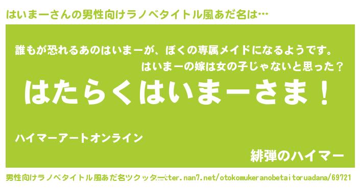 | ヘコむあだ名 | 『はいまー(小並感)』『はいぷりん』 |