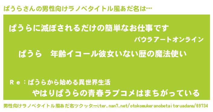 | 胡散臭い通販商品みたいなあだ名 | 『運命の人と巡り会える高級そうな壺…その名も「ぱうら」』 |