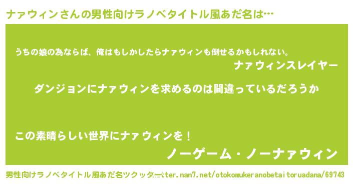 | 女子向けラノベタイトル風あだ名 | 『ナァウィンの卵を拾いまして』 |