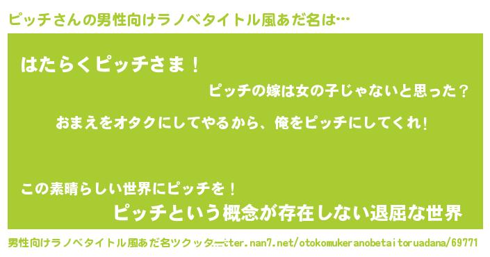 | ヘコむあだ名 | 『ピッチ(苦笑)』『ピッお』『牛乳』 |