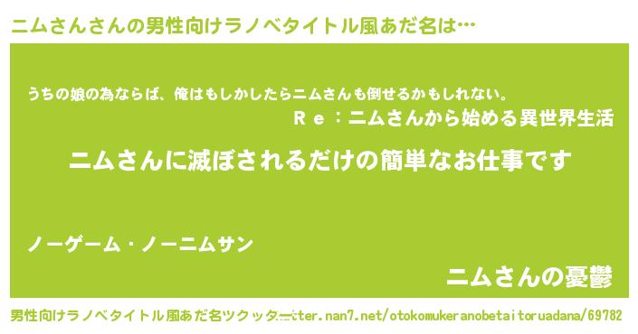 | 意味不明あだ名 | 『ニムさんフォーエバー』『自称ニムさん』 |