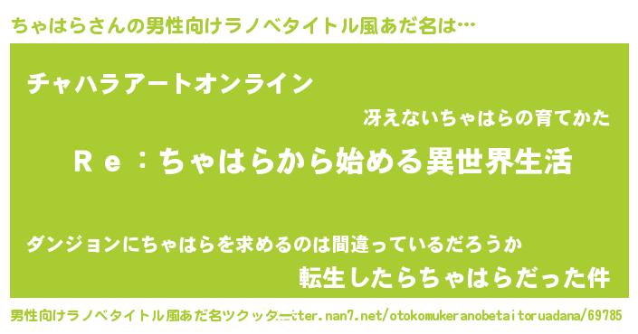 | 女子向けラノベタイトル風あだ名 | 『闇のちゃはら』 |