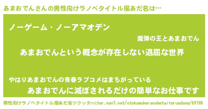 | 女子向けラノベタイトル風あだ名 | 『異世界で失敗しない100のあまおでん』 |