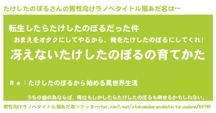 | 女子向けラノベタイトル風あだ名 | 『男装たけしたのぼるの憂鬱な任務』 |
