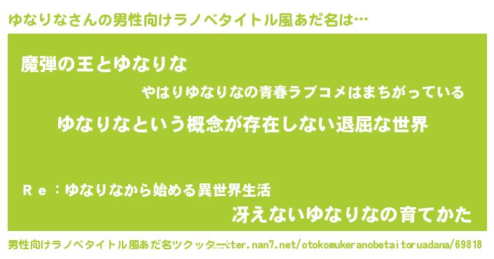 | 女子向けラノベタイトル風あだ名 | 『ゆなりなの契約王妃』『闇のゆなりな』 |