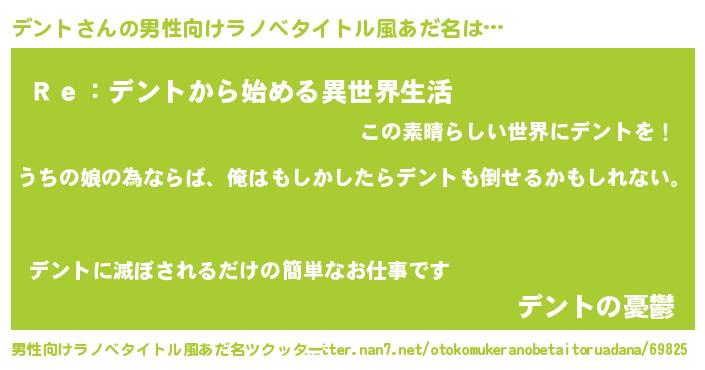 | 意味不明あだ名 | 『デントフォーエバー』『自称デント』 |