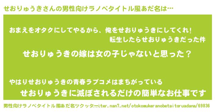 | ヘコむあだ名 | 『せおっ子』『牛乳』『せおもー』 |