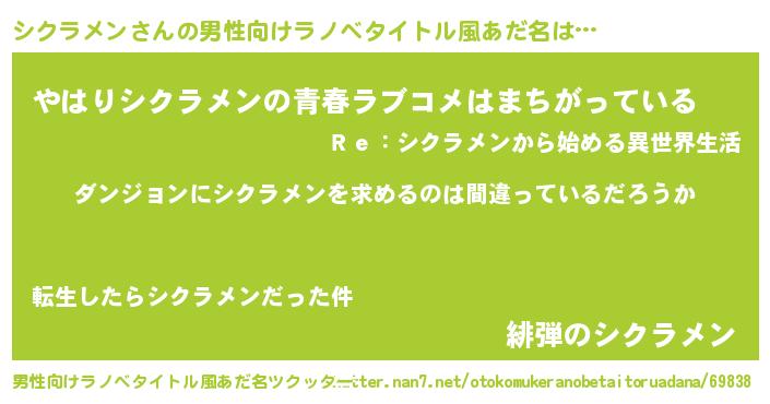 | 胡散臭い通販商品みたいなあだ名 | 『信頼と実績のペンダント…その名も「シクラメン」』 |