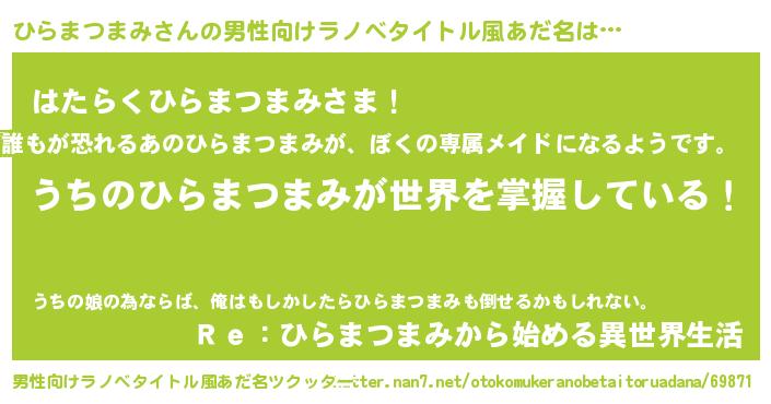 | 意味不明あだ名 | 『自称ひらまつまみ』 |