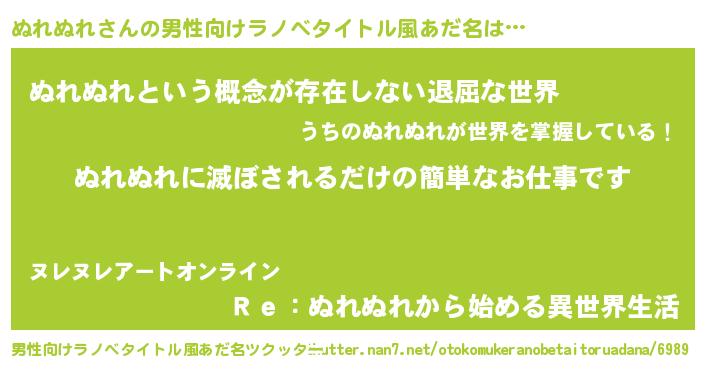 | 意味不明あだ名 | 『永久保存ぬれぬれ』『自称ぬれぬれ』 |