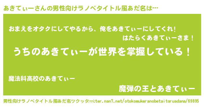 | 胡散臭い通販商品みたいなあだ名 | 『モンドセレクションを受賞した隕石のかけら…その名も「あきてぃー」』 |
