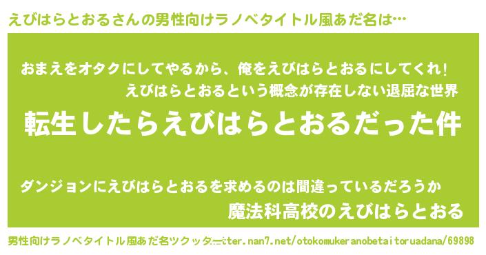 | 肩書あだ名 | 『えびはらとおる少将』 |