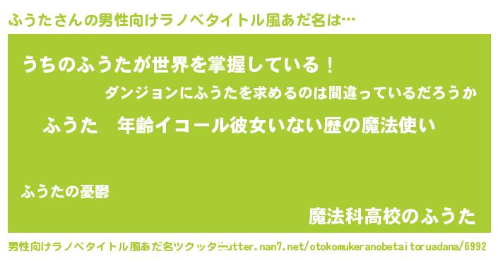 | 女子向けラノベタイトル風あだ名 | 『ふうたの玉の輿計画!』 |