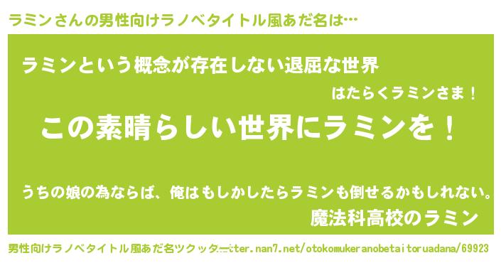 | 意味不明あだ名 | 『住所不定無職ラミン(95歳)』『自称ラミン』 |