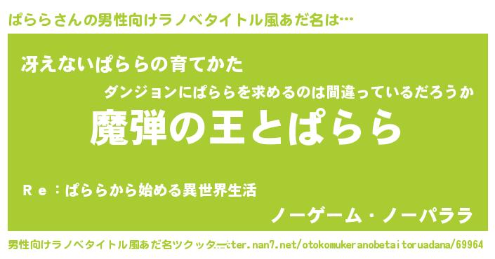 | 女子向けラノベタイトル風あだ名 | 『ぱららが死なない童話 林檎のぱららの診療簿』 |