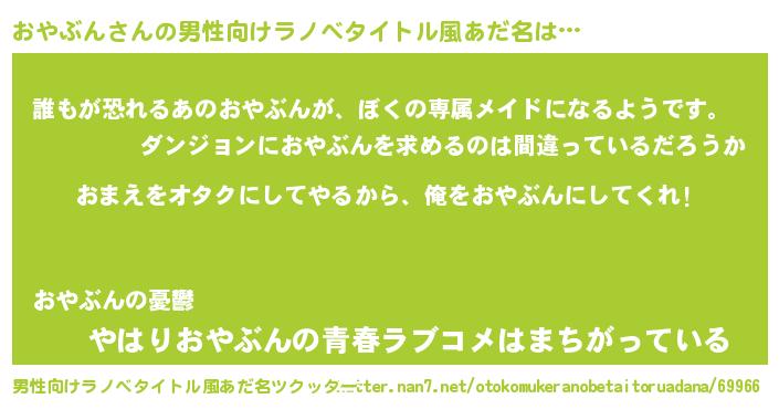 | 女子向けラノベタイトル風あだ名 | 『おやぶん恋絵巻』 |