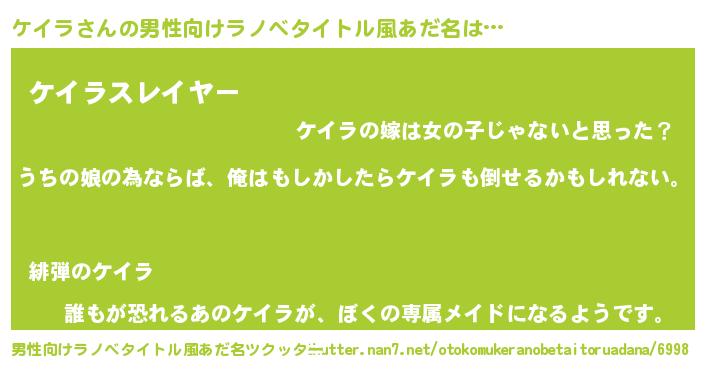 | 女子向けラノベタイトル風あだ名 | 『ケイラの婚約者』『ケイラ様がみてる』 |