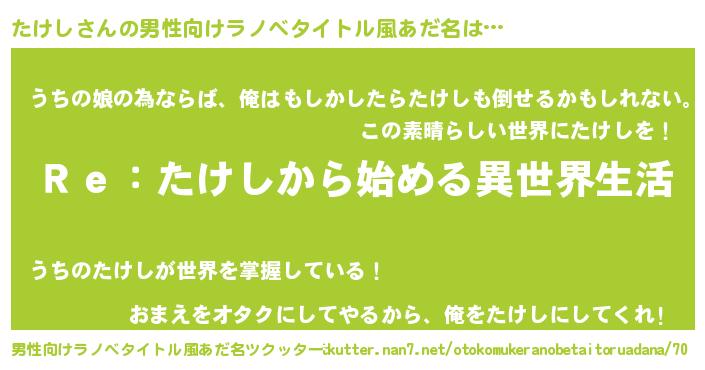 | ファンタジー風あだ名 | 『ゼタケトゥ』『エターナルタケシー』 |