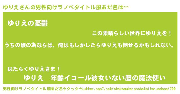 | 女子向けラノベタイトル風あだ名 | 『ゆりえの婚約者』 |