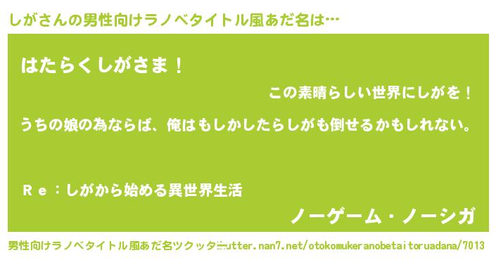 | 胡散臭い通販商品みたいなあだ名 | 『運命の人と巡り会える高級そうな壺…その名も「しが」』 |