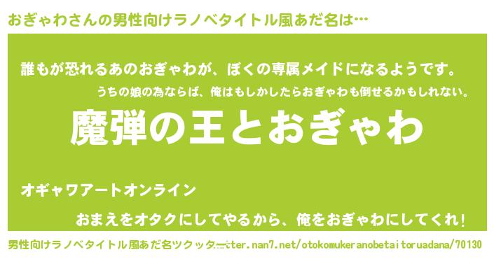 | 女子向けラノベタイトル風あだ名 | 『おぎゃわが死なない童話 林檎のおぎゃわの診療簿』 |