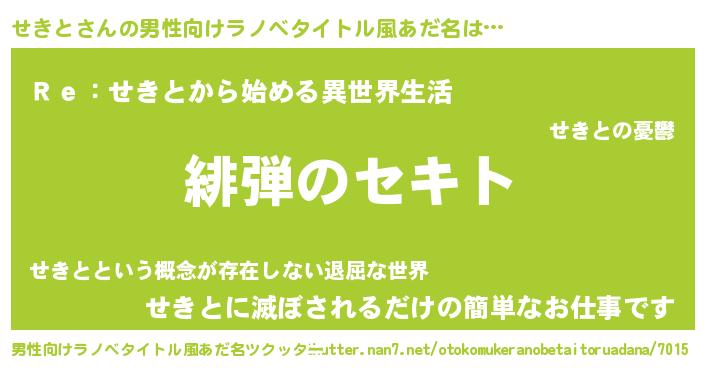 | 女子向けラノベタイトル風あだ名 | 『シンデレラせきと家の靴箱館』 |