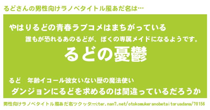 | 女子向けラノベタイトル風あだ名 | 『るど姫と円卓の騎士』『るど伯爵の花嫁』 |