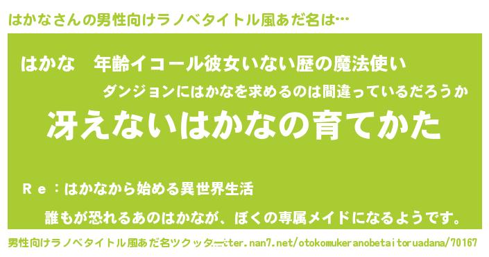 | 女子向けラノベタイトル風あだ名 | 『シンデレラはかな家の靴箱館』 |