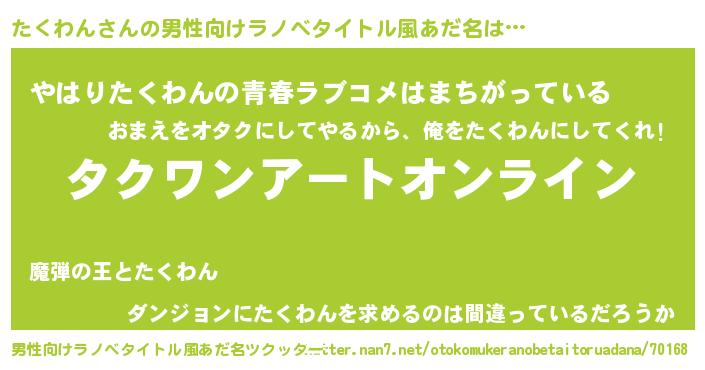 | 胡散臭い通販商品みたいなあだ名 | 『億万長者になれる霊験あらたかなお札…その名も「たくわん」』 |